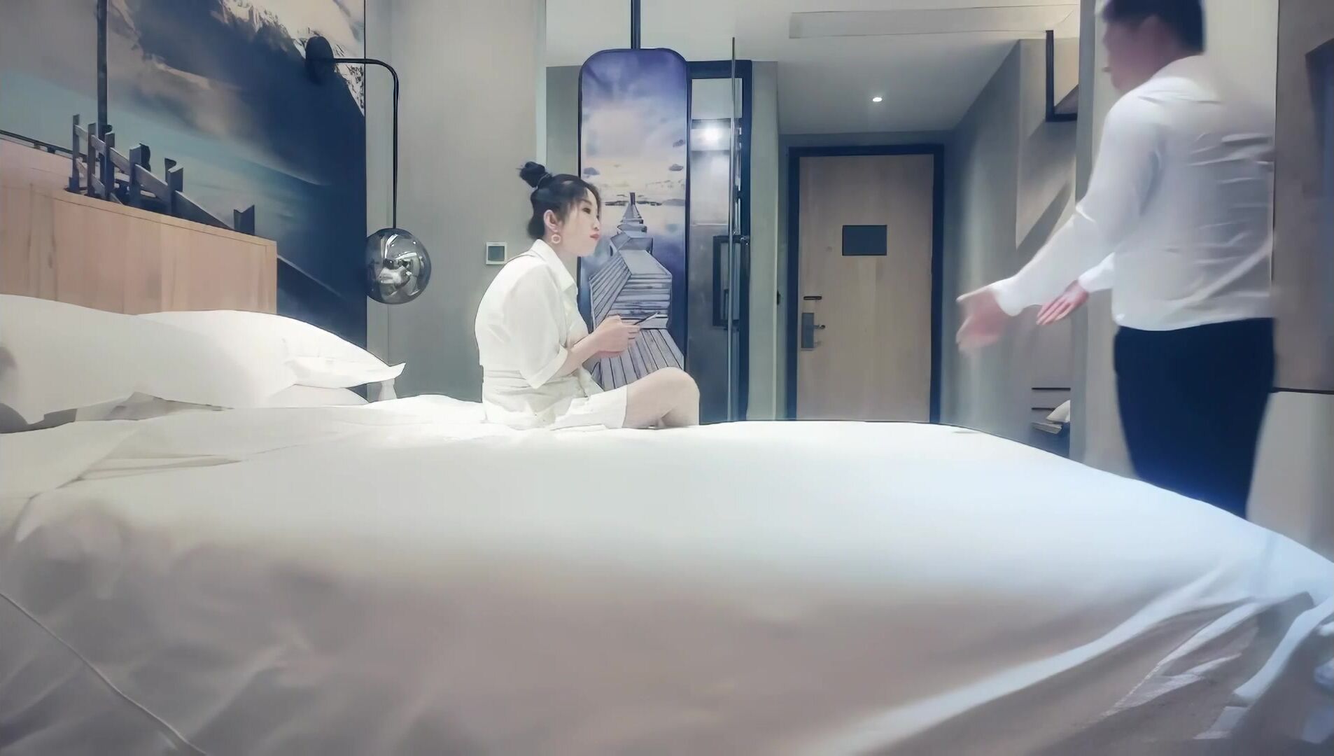 高颜值黄发妹子啪啪,洗完澡开干撸硬抬腿侧入抽插猛操!